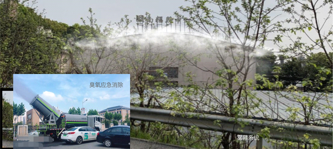 2.臭氧应急治理:针对区域环境已经产生的臭氧问题进行应急治理,应用UED·(中国区) - 官网自主研发的臭氧消除剂以植物体内抗氧化成分的一种或多种为主要成分,通过还原及协同催化分解作用可有效提升水雾对于臭氧的分解效果。其喷洒在空气中后便可在自然光照条件下促进臭氧的分解,从而可以进一步降低近地面臭氧浓度,改善城市空气质量。在臭氧污染高峰时段,向污染区域喷洒臭氧消除剂,能有效地降低峰值浓度,减缓臭氧污染形势。