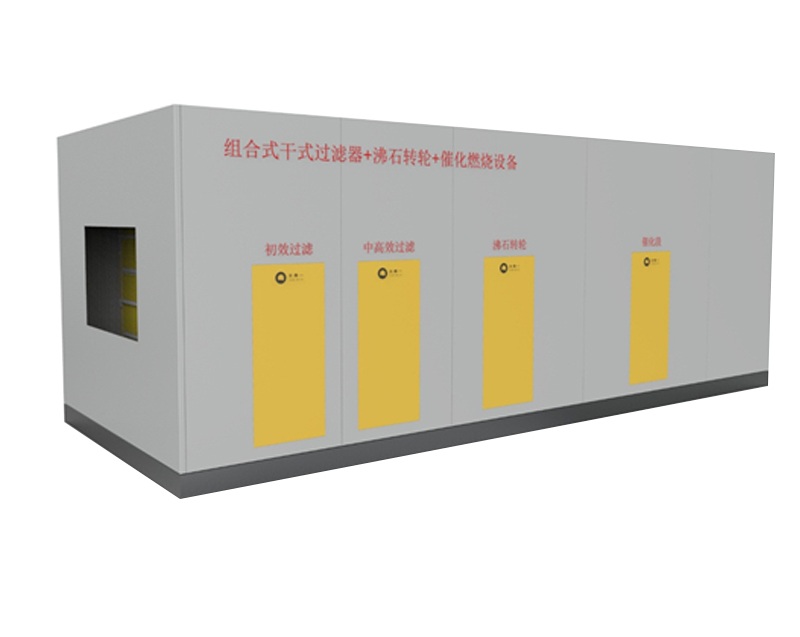 组合式CO一体机-沸石转轮系列包含用干式过滤器、沸石转轮吸附脱附、CO炉、风机、电控、阀门、管道等单元,采用集成式一体化设计。设备具有处理效率高、自动化设计程度高、操作简便、美观等优点。